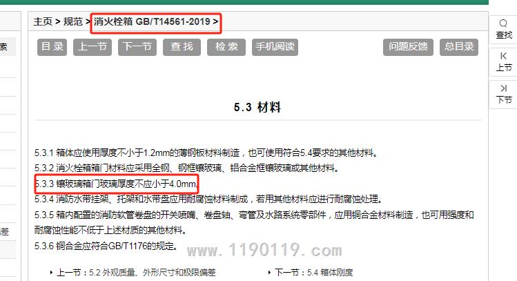 你看一下《消火栓箱》 GB/T14561-2019,规定了玻璃厚度,但没要求安全玻璃。