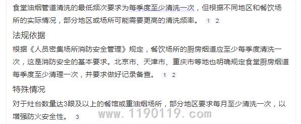 宾馆、餐饮场所、医院、学校的厨房烟道应至少每季度清洗一次;