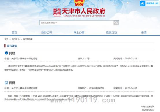网友咨询: 住房和城乡建设部关于发布国家标准《消防设施通用规范》的公告中废止了《建筑灭火器配置验收及检查规范》GB 50444-2008第5.3.2条款。我想问现在关于灭火器的维修期限要按什么条款执行?