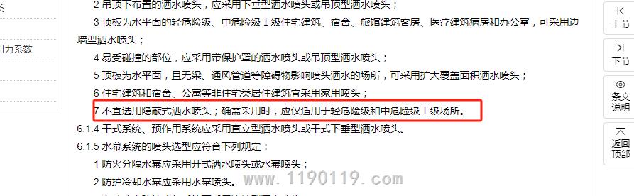 不宜选用隐蔽式洒水喷头,确需采用时,应仅适用于轻危险级和中危险级Ⅰ级场所