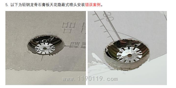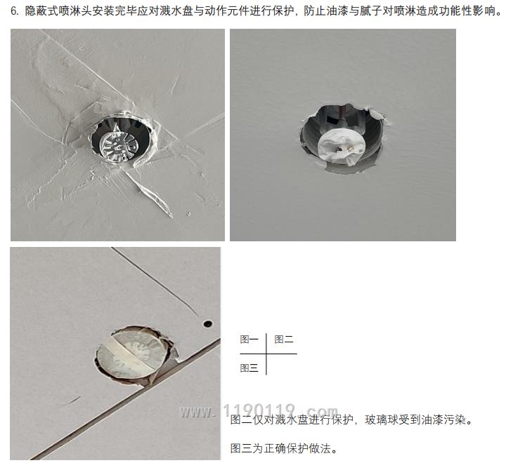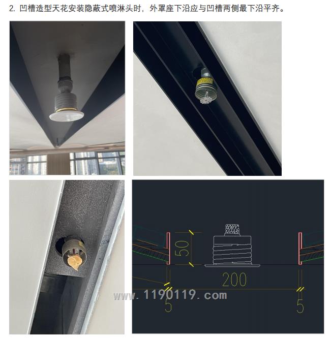 隐喷外罩座的下沿应与天花完成面平齐。这是施工前应执行的标准。
