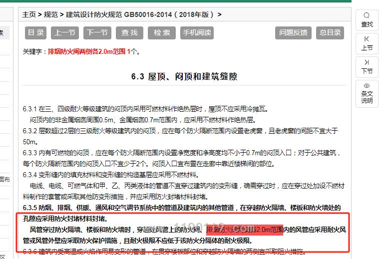 同时提醒下,设备房排烟管道耐火极限是0.5小时,与风井连接段的2米范围内排烟管道耐火极限是1小时
