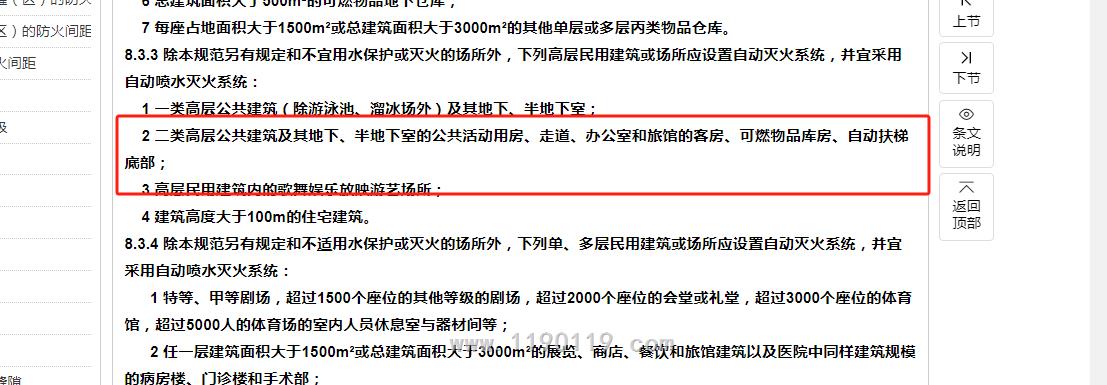 2 二类高层公共建筑及其地下、半地下室中的公共活动用房、走道、办公室、旅馆的客房、可燃物品库房;