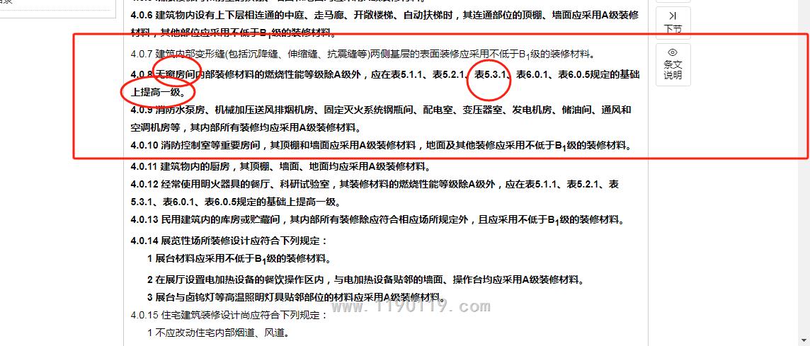 我也认为应当可以,但内装修规范又说无窗房间要提高一级,岂不是基本上大多数地下空间都要A级了嘛,总感觉这样不合理。而且通规6.5.6 下列场所设置在地下或半地下时,室内装修材料不应使用易燃材料、石棉制品、玻璃纤维、塑料类制品,顶棚、墙面、地面的内部装修材料的燃烧性能均应为A级: 1 汽车客运站、港口客运站、铁路车站的进出站通道、进出站厅、候乘厅; 2 地铁车站、民用机场航站楼、城市民航值机厅的公共区; 3 交通换乘厅、换乘通道。这条并没有说其它场所也一定要用A级,所以感觉好纠结。