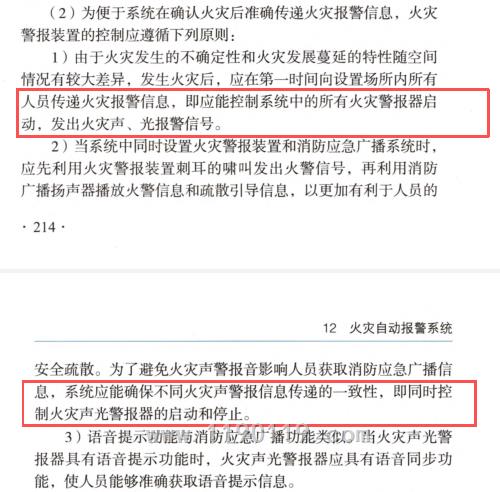 为了避免火灾声警报音影响人员获取消防应急广播信息,系统应能确保不同火灾声警报信息传递的一致性,即同时控制火灾声光警报器的启动和停止 ”