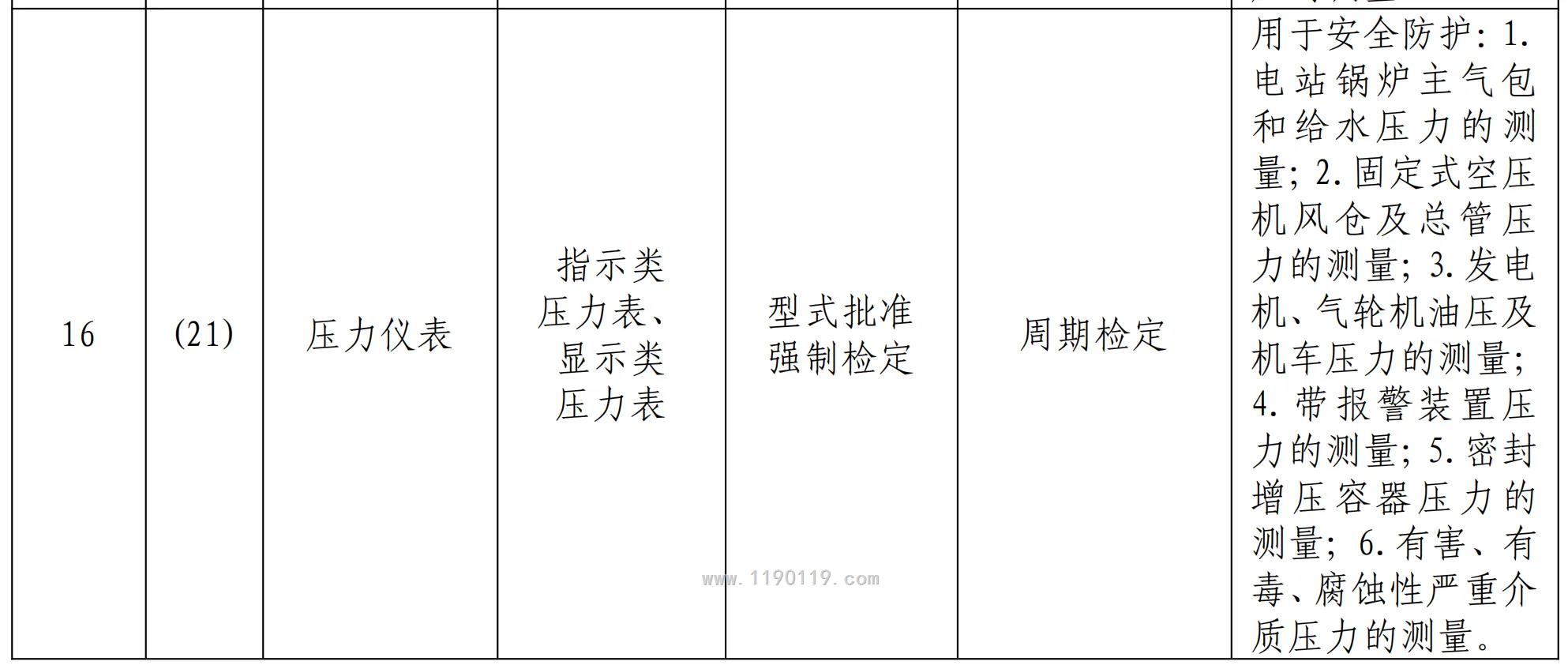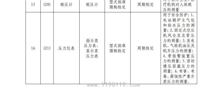 中华人民共和国强制检定的工作计量器具目录