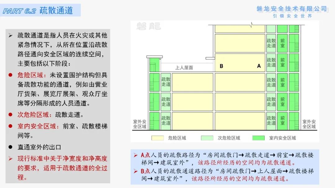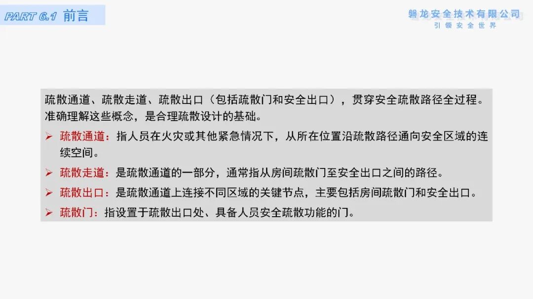 本专题围绕建筑防火安全疏散体系,明确了疏散通道、疏散走道、疏散出口(含房间疏散门、安全出口)的核心定义与关联。