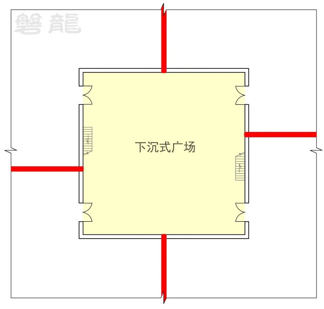 直接通向室外安全区域的出口,主要包括:房间直通室外的出口、疏散走道直通室外的出口、疏散楼梯间直通室外的出口【图示8】,以及符合标准要求的连廊、天桥【图示9】、下沉式广场的出口【图示10】等。