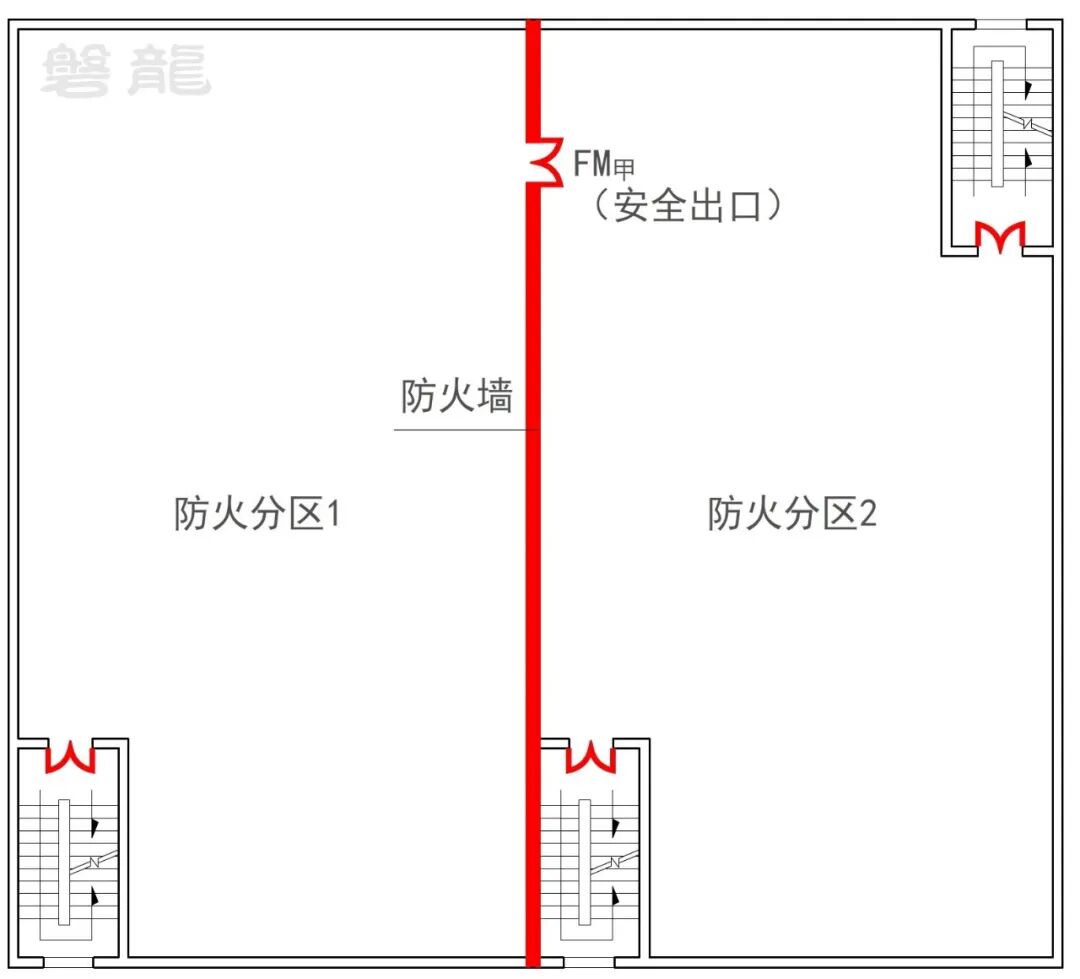 实际工程中,也存在其他形式的安全出口,比如,在满足特定条件时,可利用通向相邻防火分区的甲级防火门作为安全出口【图示12】。
