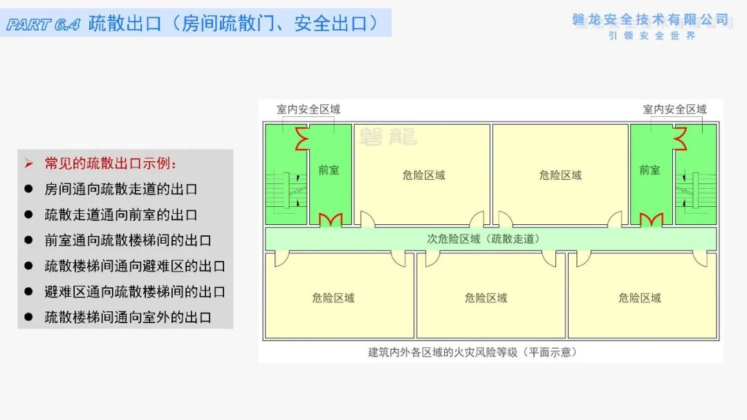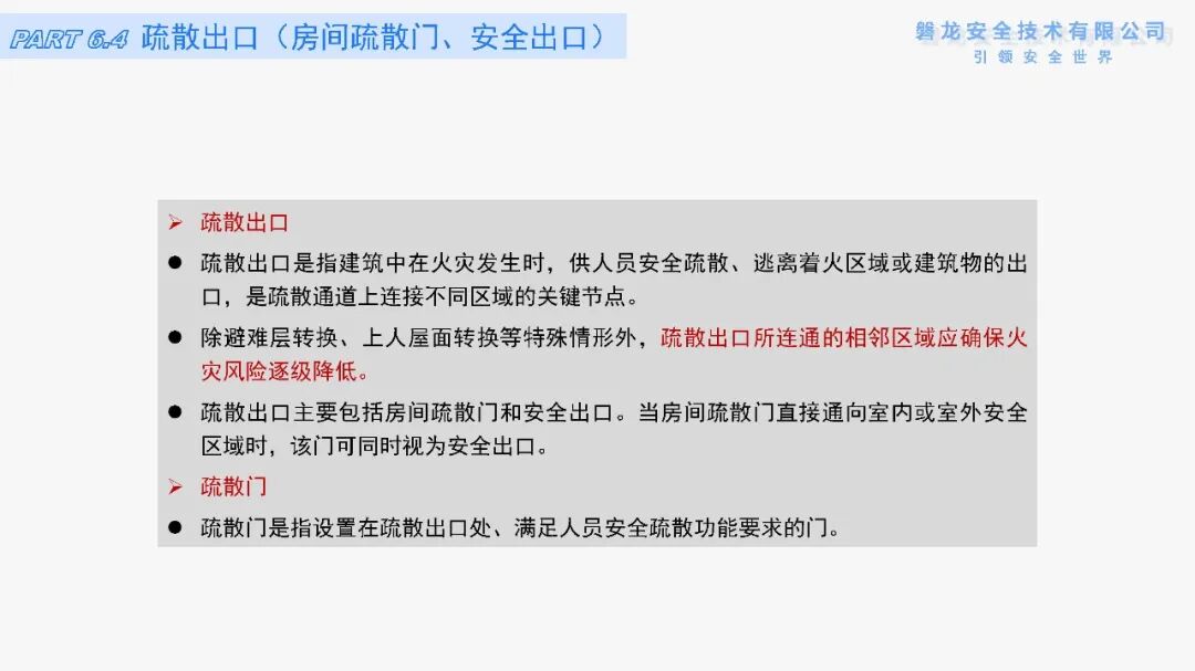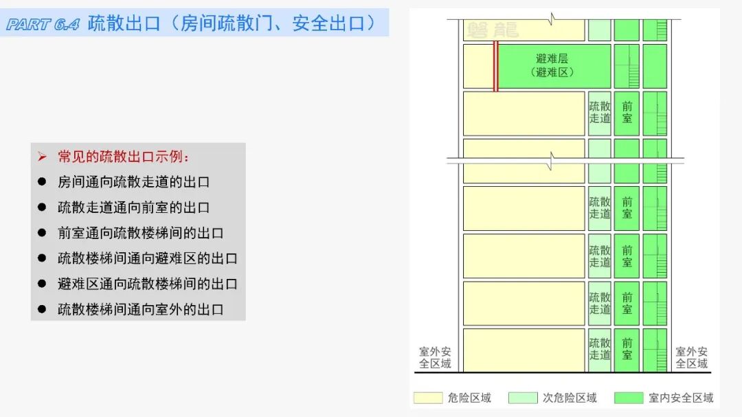 今天我们讲解安全疏散专题的第6部分:疏散通道、疏散出口(房间疏散门、安全出口)。