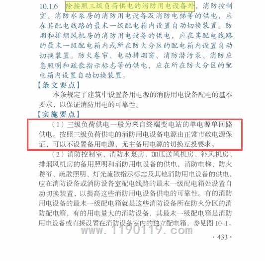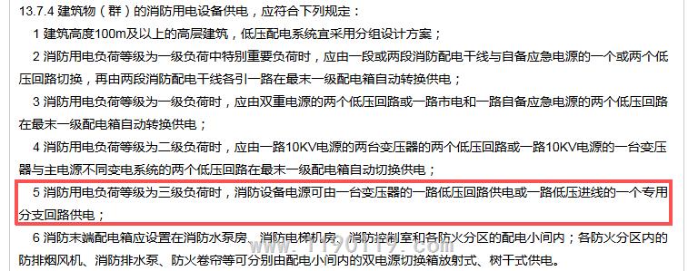 建筑防火通用规范GB55037有明确,三级负荷除外