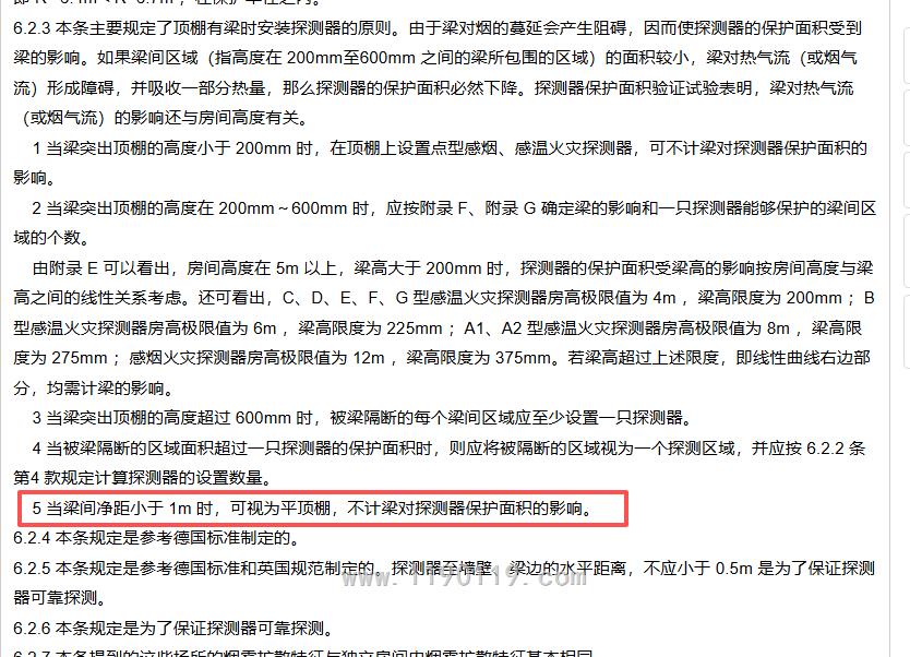 5 当梁间净距小于 1m 时,可不计梁对探测器保护面积的影响。