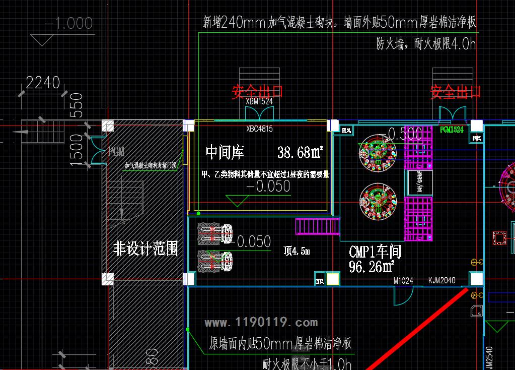 有一个二层的丙类厂房(非劳动密集型企业),在改造过程中,需要增加一个甲类中间仓库,中间仓库布置在外墙靠近楼梯间,这个布置是是否违反规范要求。见示意图。