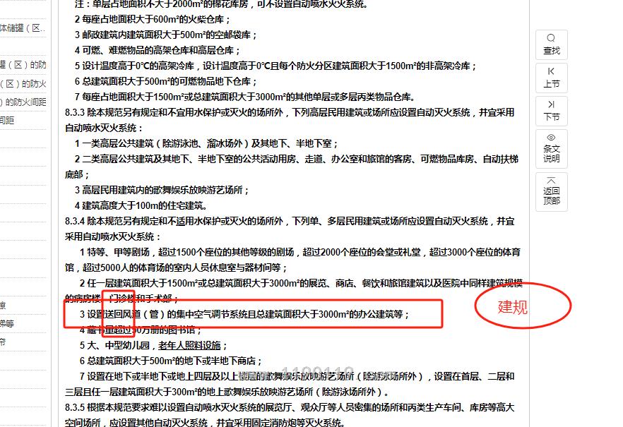 2.依据建筑设计防火规范 GB50016-2014(2018年版)8.3.4条款 第7条 :3 设置送回风道(管)的集中空气调节系统且总建筑面积大于3000m²的办公建筑等;其中条款有个“等”属于规范没有说清楚(等可以包括体育馆和其他公建),这条是“宜“。这条规范已废除,按GB55037-2022 8.1.9.7执行。