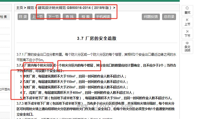 3.7.2 厂房内每个防火分区或一个防火分区内的每个楼层,其安全出口的数量应经计算确定,且不应少于2个;当符合下列条件时,可设置1个安全出口: