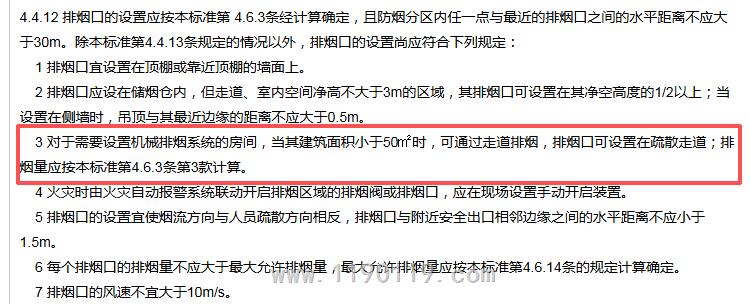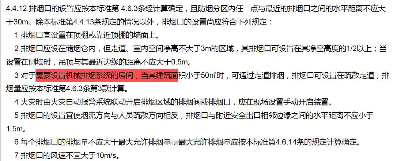 根据烟标和建筑防火通用规范要求,走道设置机械排烟时,建筑面积小于50平方米的无可开启外窗的房间内可以不需要设置排烟设施,此情况通过与房间相通的走道进行排烟即可
