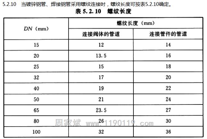 套丝长度是按照哪个规范要求
