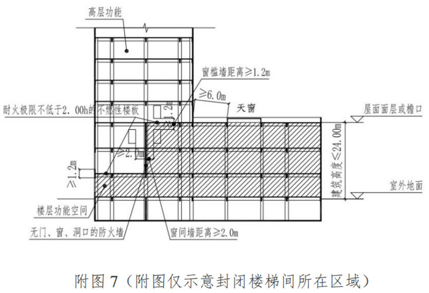 回复:高层公共建筑的主体投影范围内、建筑高度不大于24m的楼层中仅供这些楼层使用的独立疏散楼梯,允许采用封闭楼梯间;