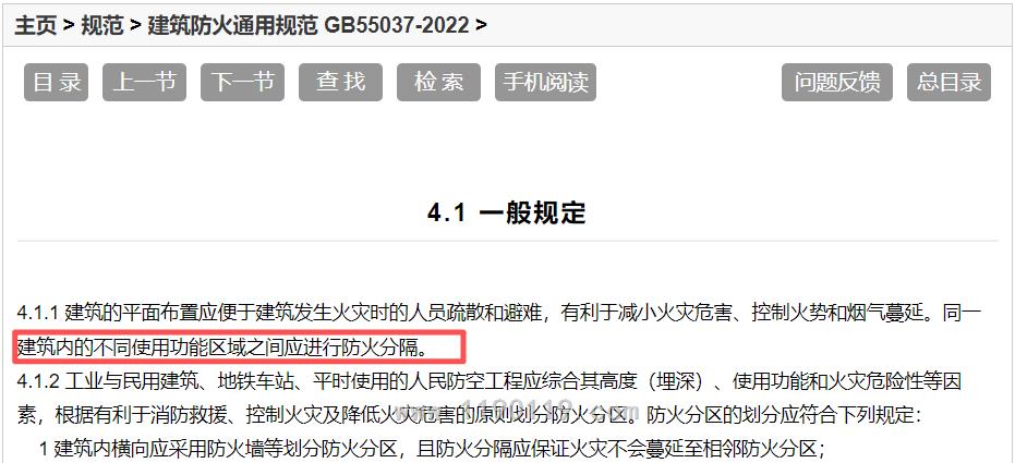 符合该场所相应级别的防火隔墙、防火门等耐火要求。
