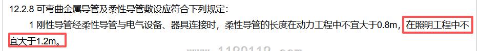 消防应急照明和疏散指示系统技术标准 GB51309-2018/4.3.15 从接线盒、管路、槽盒等处引到系统部件的线路,当采用可弯曲金属电气导管保护时,其长度不应大于2m,且金属导管应入盒并固定。