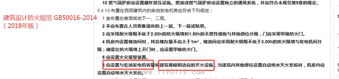 自动灭火设施规范里提到的一般是“布置在民用建筑内的柴油发电机房”,其余情况可以参照但不做强制要求,当然也要结合设计意见执行