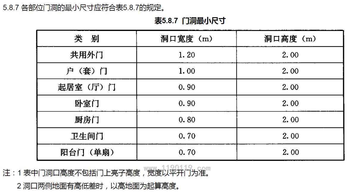 住宅门洞最小尺寸是2米。详见《住宅设计规范 GB50096-2011》5.8.7