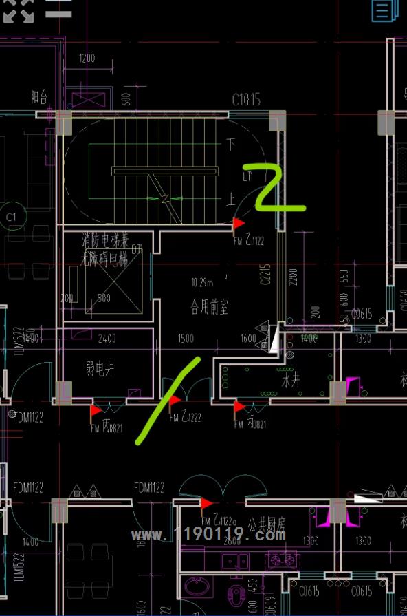 疏散门广义上 包含房间到走道这个门, 前室也叫疏散门,楼梯间门也叫疏散门,那么问题来了:高层公共(宿舍楼),规范说楼梯间梯段1.2米,室外门1.2米,疏散门0.8米, 那么图中这处标1号(合前室门),2号(楼梯门)是要符合0.8米宽就行(按疏散门0.8米理解),还是得按1.2米宽(按楼梯间也是1.2米宽理解) , 还是说1号门必须按1.2米,楼梯门可0.8米? 如何正常理解疏散1号,2号门的必须最低宽度?
