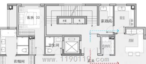 建筑高度小于33米的住宅能否按下图围绕设备井设置三折疏散楼梯?火通规要求疏散应连续,此种疏散楼梯通过一段走廊才能跑到对面疏散,是否合规?有无规范依据?