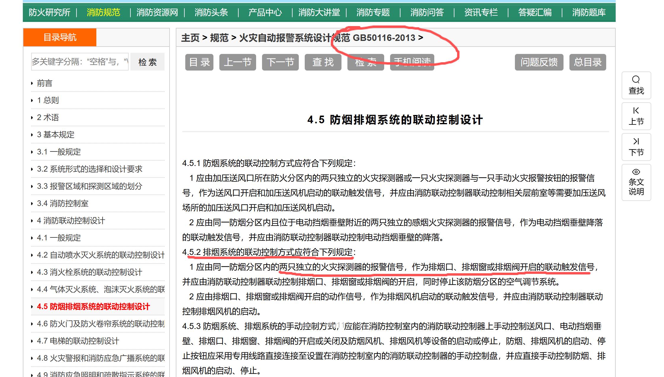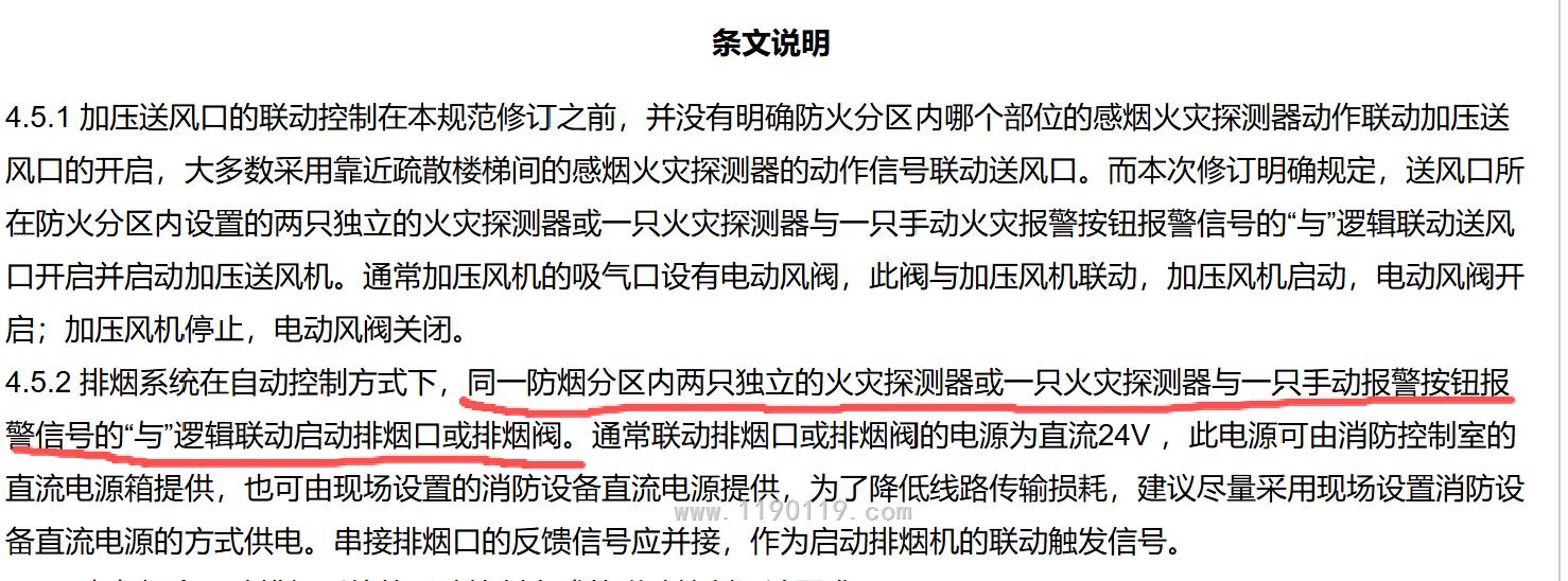1 应由同一防烟分区内的两只独立的火灾探测器的报警信号,作为排烟口、排烟窗