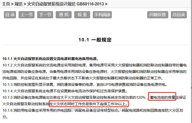 (2)、依据:火灾自动报警系统设计规范 GB50116-2013: 火灾状态同时工作负荷条件下连续工作3H