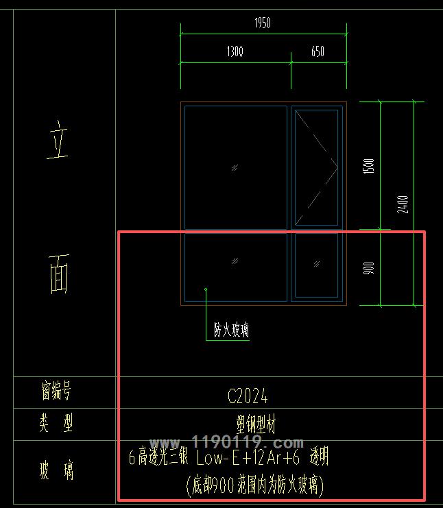 如图,一个住宅项目,安全隔间的窗户明确耐火完整性能不低于1个小时,但是门窗大样图上又明确标注了只有底部一部分为防火玻璃,这样能否达到防火要求呢。