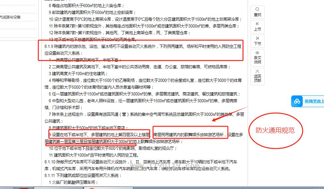 8.1.9 除建筑内的游泳池、浴池、溜冰场可不设置自动灭火系统外,下列民用建筑、场所和平时使用的人民防空工程应设置自动灭火系统: 9 设置在地下或半地下、多层建筑的地上第四层及以上楼层、高层民用建筑内的歌舞娱乐放映游艺场所,设置在多层建筑第一层至第三层且楼层建筑面积大于300㎡的地上歌舞娱乐放映游艺场所;