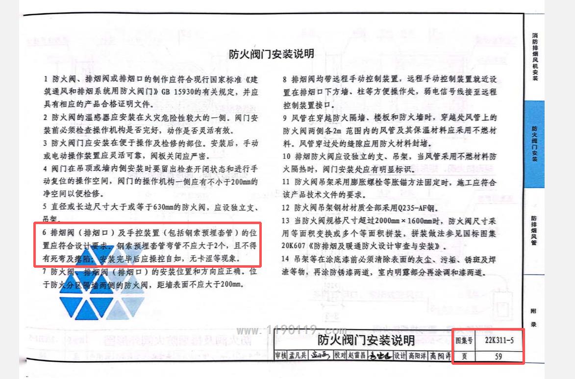 旧的图集07K103-2第62页有提到“远控装置的电气接线及控制缆绳采用DN20套管,控制缆绳的弯曲半径不小于250毫米,弯曲半径一般不多余2处,缆绳长度一般不大于6米”,而新图集22K311-5(替代07K103-2)内则删除了6米的内容,表述为“钢索预埋套管弯管不应大于2个,且不得有死弯及瘪陷;安装完毕后应操控自如,无卡涩等现象”