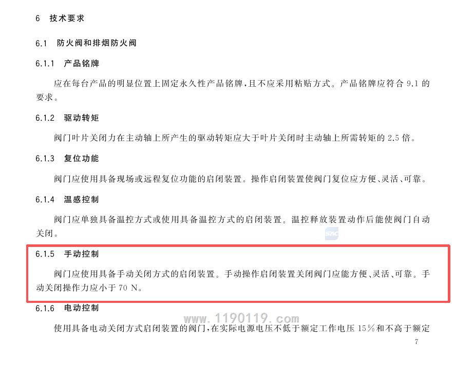 从规范正文里,没有这个要求,只要手动开启操作力小于70N,且方便操作即可