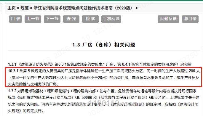 《建筑设计防火规范》第8.3.1 条第2款规定的类似生产厂房、第8.4.1条第1项规定的类似用途的厂房和第10.3.1条第5款规定的人员密集的厂房是指“单体建筑任一生产加工车间或防火分区,同一时间的生产人数超过200人(或者同一时间的生产人数超过30人且人均建筑面积小于20平方米)的制笔、制伞、打火机、眼镜、印刷等丙类厂房、肉食蔬菜水果等食品加工,或生产性质及火灾危险性与之相类似的厂房”及衣、鞋、制、玩等劳动密集型丙类厂房及其宿舍等