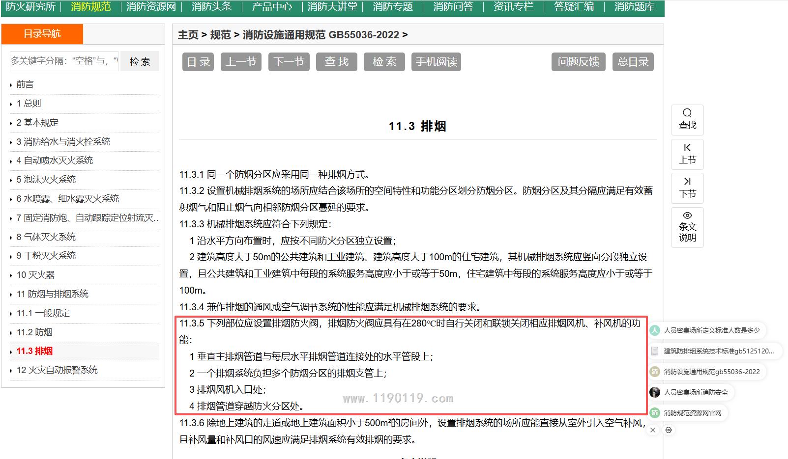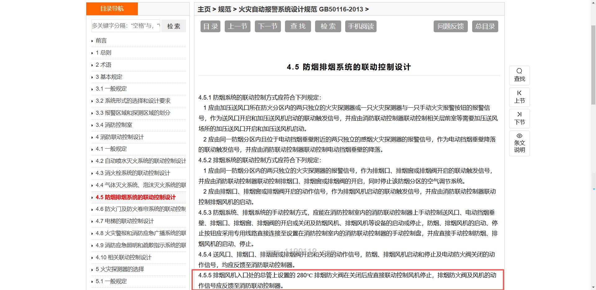 烟规,要求所有的280防火阀都与排烟风机连锁,火规只说风机入口处,到底以谁为准?