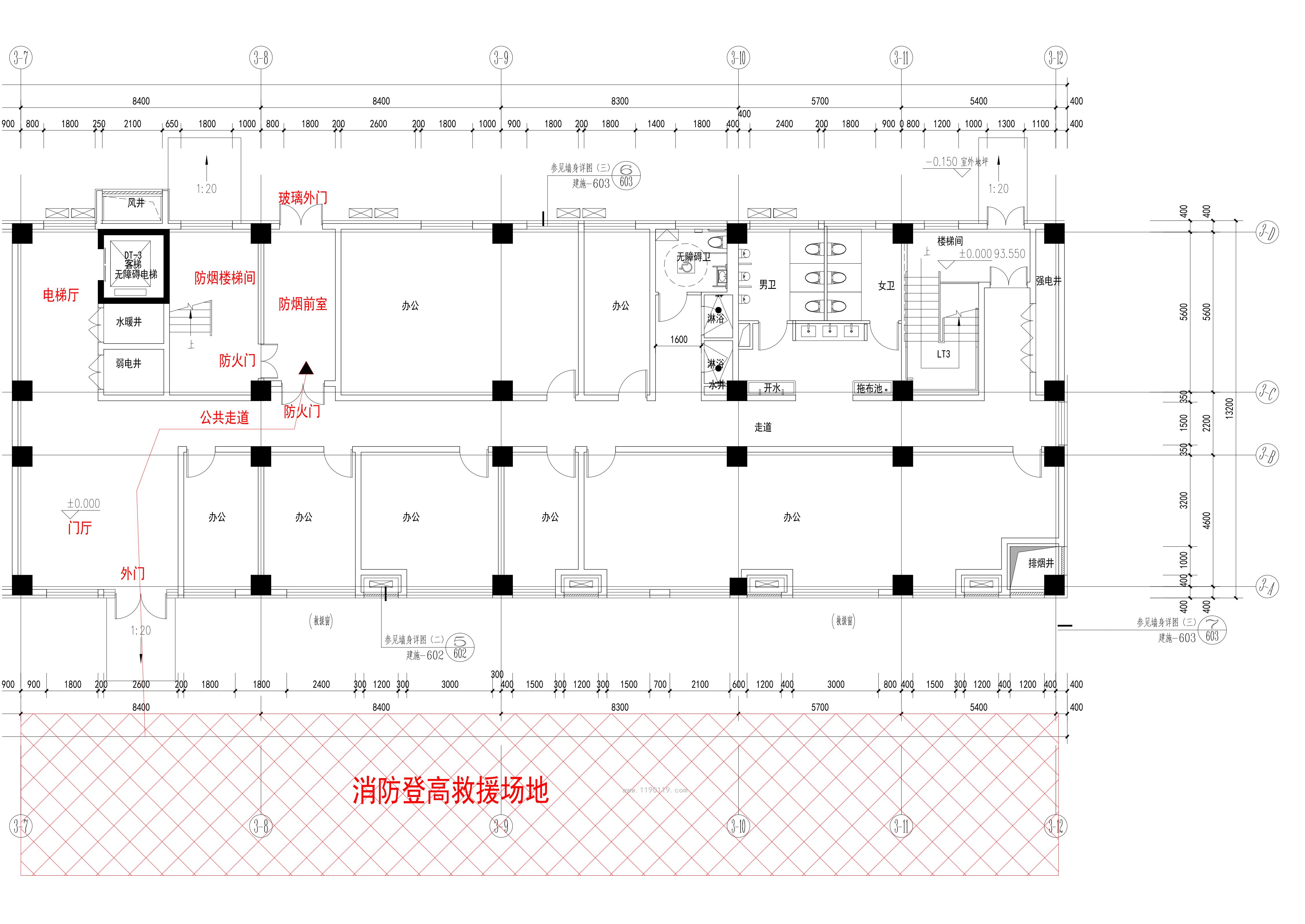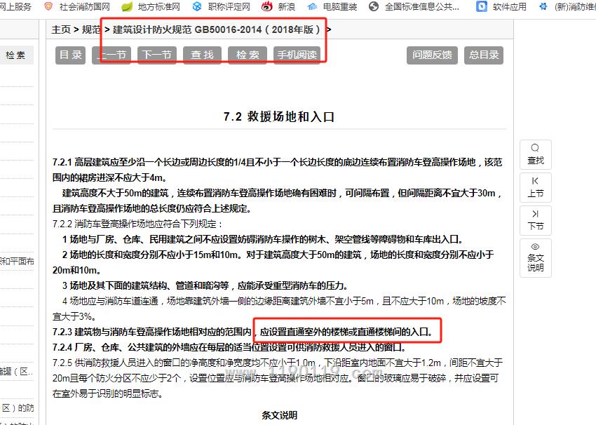 说的是登高场地应能直通建筑的楼梯间,你的楼梯间在图纸上侧,登高场地应在上侧