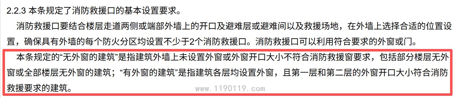 无外窗的建筑应每层设置消防救援窗口,有外窗的建筑应自第三层起每层设置消防救援口。怎么通俗一些的去理解这句话中“无外窗” “有外窗”;一般的建筑不都是有在外窗吗?