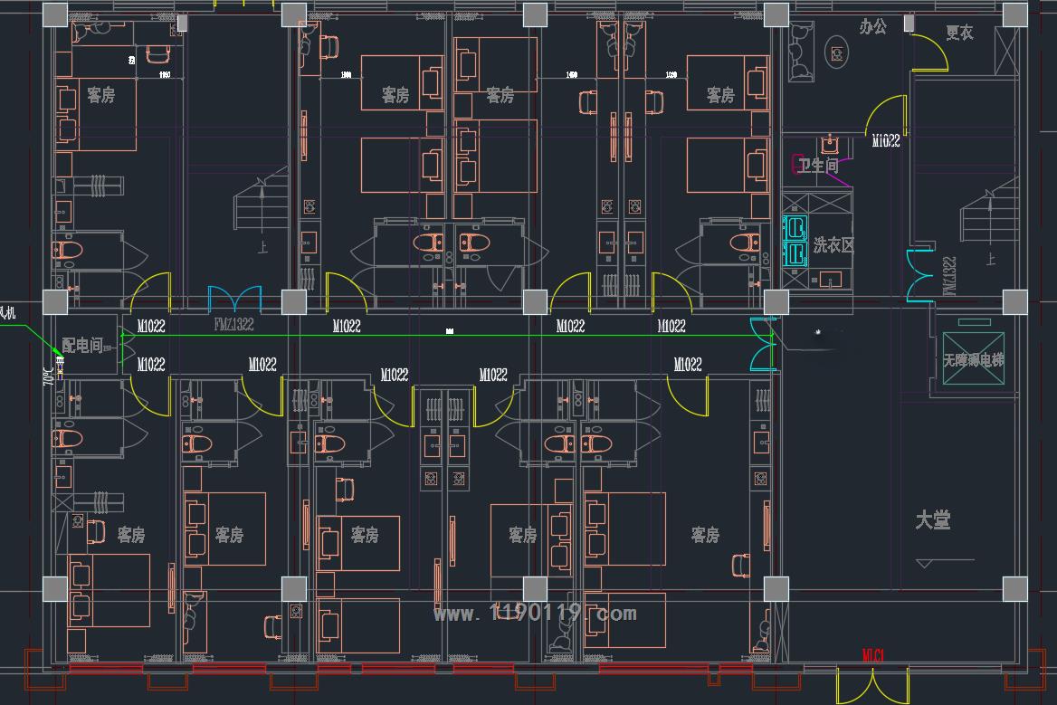 如图所示,一层中部左侧是内走道,右侧是大唐。