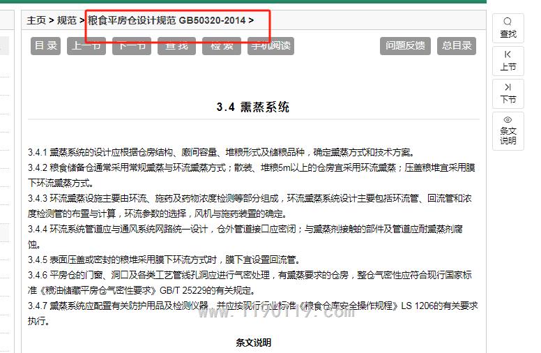 粮食平房仓设计规范 GB50320-2014,第3.4熏蒸系统,第7章消防设计有明确要求