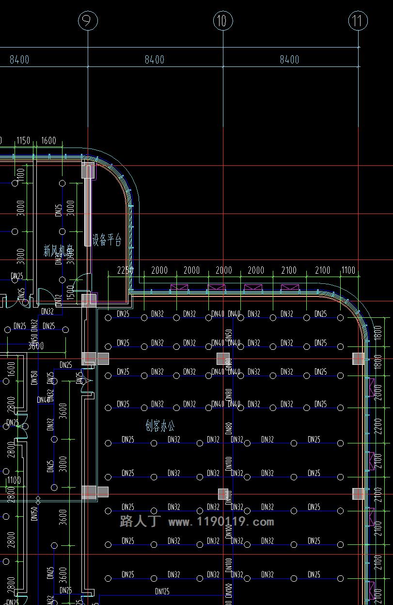 创客办公四个字北侧比南侧多了2个喷头,此处喷头均为上喷