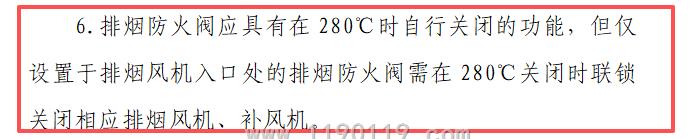 《烟规》5.2.2.5排烟防火阀在280℃时应自行关闭,并应连锁关闭排烟风机和补风机。